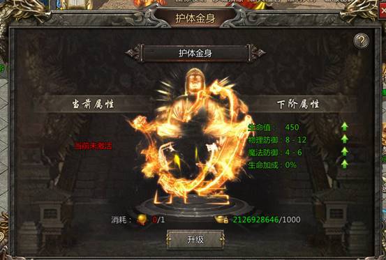 2.消耗护体金丹和元宝可提升护体金身等级。